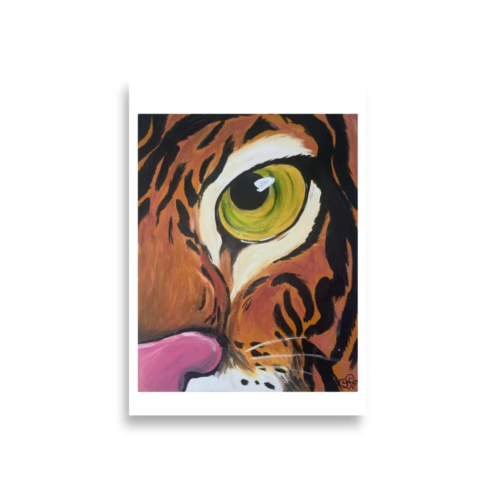 A great print to add color, boldness, and big cat energy to your space. The tiger symbolizes protection, strength, and beauty. In some Asian cultures, they are a symbol of good wealth and guardians against evil.